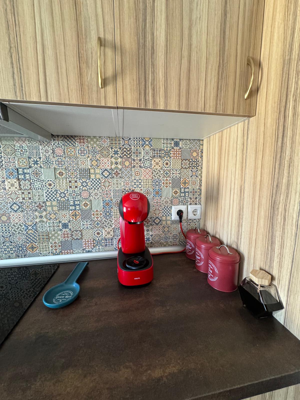 - Cozinha (Kitchnett): Totalmente equipada com torradeira, frigorífico, máquina de lavar loiça, placa de indução, forno, micro-ondas, varinha mágica, chaleira, máquina de café Dolce Gusto – com água e cápsulas de café de cortesia – e todos os utensílios para preparar e realizar as refeições.